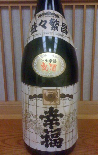 This is a big bottle(1.8L) of SAKE named 幸福 that means HAPPY!